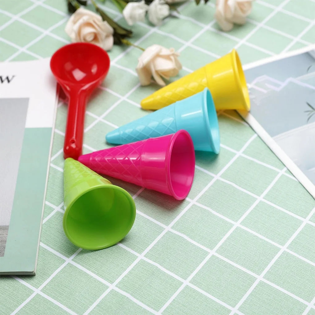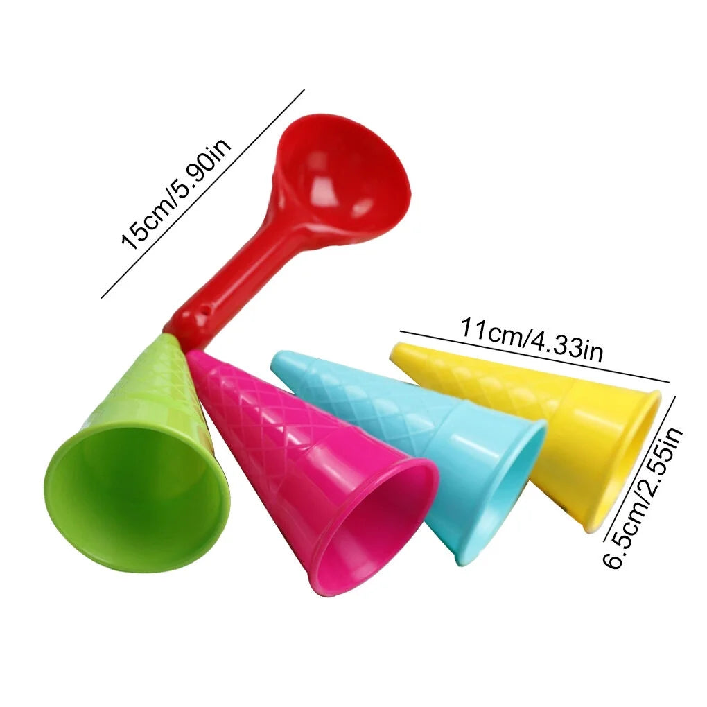 A 5-piece ice cream cone sand toy set that lets kids scoop, build, and play creatively at the beach or sandbox.